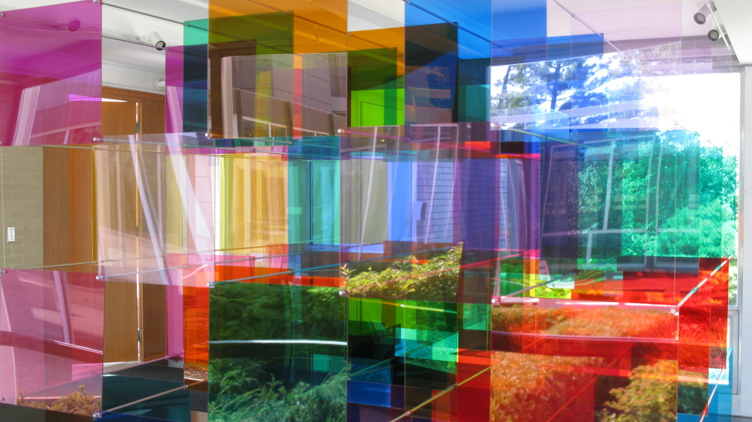 Captivated by the colors & fractured light of Parallel Perspectives, an art installation by Luftwerk, a Chicago-based collaboration of Petra Bachmaier and Sean Gallero, I aimed to capture the movement of light within & outside of of the hanging sculpture as it interacted within the space of the room. Situated within the McCormick House designed by Mies van der Rohe, the art installation's rainbow rays contrasted with both the room's rigidity and the outdoor companion house structure.